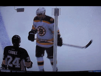 If the first two games have been a dream, don’t wake me up. This gif of Brad Marchand and Matt Cooke speaks to how this series is being played thus far. The Penguins have been more concerned about being the aggressors that they are trying to beat the Bruins at their own game. I don’t know what the pre-series game plan was but it appears to be trying to be someone they’re not.  The Penguins have been known as a high-flying finesse team and now instead of trying to play their style of hockey, they came out and tried to play in the style of the Bruins and take a physical strategy of hard-hitting and aggressiveness. I don’t understand the strategy and it will come back to bite the Pittsburgh Penguins if no adjustments are made. Both goals scored by Brad Marchand came at the most critical times of the game. The first, 28 seconds into the game that took away any momentum the Penguins and the crowd may have had going into the game. His second goal, with a little over eight seconds remaining in the first period, killed any confidence Brandon Sutter’s goal & the goaltending change gave the Pittsburgh Penguins.